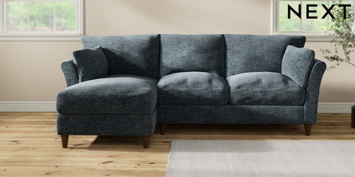 7.3.1 Buy Hartley Relaxed Sit Medium Sofa Chaise - Left Hand Chunky Chenille Dark Navy Blue Low Conical - Mid from the Next UK online shop