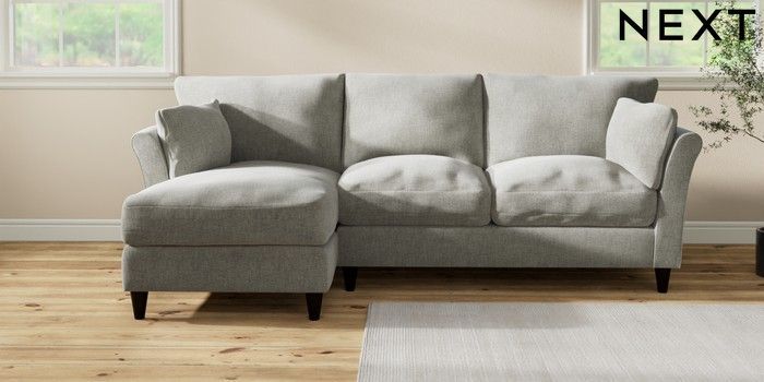 7.3.1 Buy Hartley Relaxed Sit Medium Sofa Chaise - Left Hand Chunky Chenille Light Grey Low Conical - Dark from the Next UK online shop