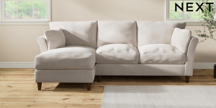 7.3.1 Buy Hartley Relaxed Sit Medium Sofa Chaise - Left Hand Chunky Chenille Oyster Low Conical - Mid from the Next UK online shop