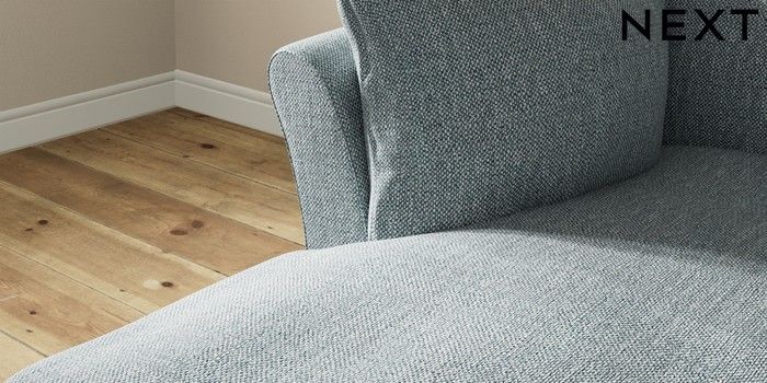 7.3.1 Buy Hartley Relaxed Sit Medium Sofa Chaise - Left Hand Chunky Weave Mid Blue Low Conical - Mid from the Next UK online shop