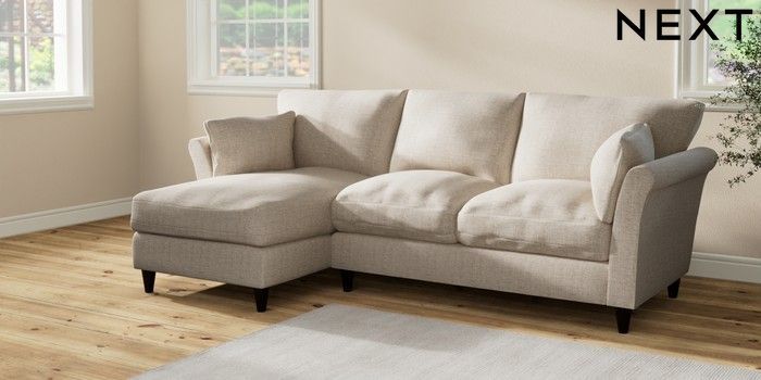 7.2.10 Buy Hartley Relaxed Sit Medium Sofa Chaise - Left Hand Chunky Weave Mid Natural Low Conical - Dark from the Next UK online shop Click here to use our accessible website