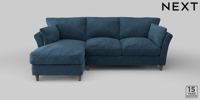 6.12.1 Buy Hartley Relaxed Sit Medium Sofa Chaise - Left Hand Cotswold Chenille Dark Blue Low Conical - Mid from the Next UK online shop Click here to use our accessible website