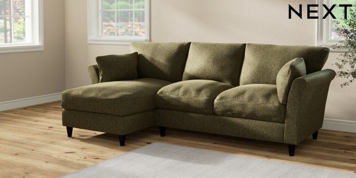 7.2.10 Buy Hartley Relaxed Sit Medium Sofa Chaise - Left Hand Cotswold Chenille Dark Green Low Conical - Dark from the Next UK online shop Click here to use our accessible website