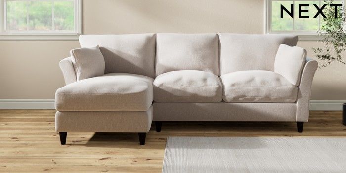 7.3.1 Buy Hartley Relaxed Sit Medium Sofa Chaise - Left Hand Cotswold Chenille Oyster Low Conical - Dark from the Next UK online shop