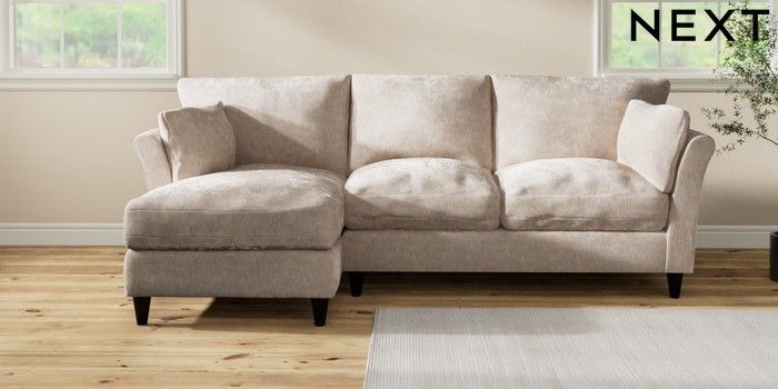 7.3.1 Buy Hartley Relaxed Sit Medium Sofa Chaise - Left Hand Distressed Velour Mid Natural Low Conical - Dark from the Next UK online shop