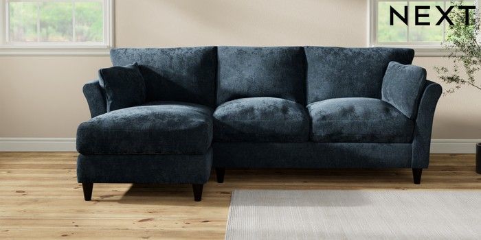 7.3.1 Buy Hartley Relaxed Sit Medium Sofa Chaise - Left Hand Distressed Velour Midnight Blue Low Conical - Dark from the Next UK online shop
