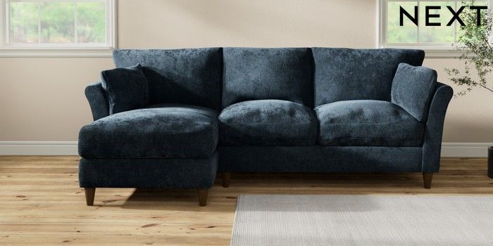 7.3.1 Buy Hartley Relaxed Sit Medium Sofa Chaise - Left Hand Distressed Velour Midnight Blue Low Conical - Mid from the Next UK online shop