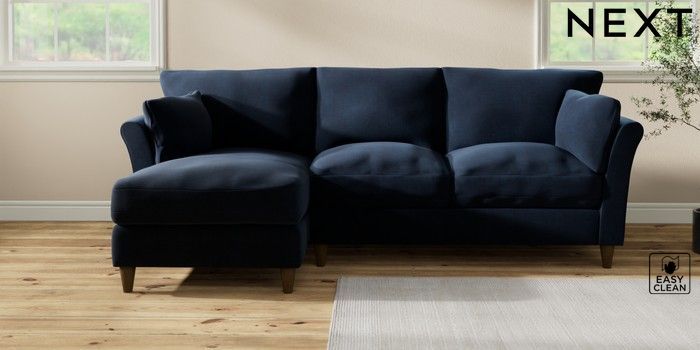 7.3.1 Buy Hartley Relaxed Sit Medium Sofa Chaise - Left Hand Fine Chenille Easy Clean Dark Navy Blue Low Conical - Mid from the Next UK online shop