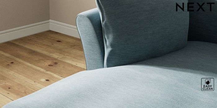 7.3.1 Buy Hartley Relaxed Sit Medium Sofa Chaise - Left Hand Fine Chenille Easy Clean Mid Blue Low Conical - Light from the Next UK online shop