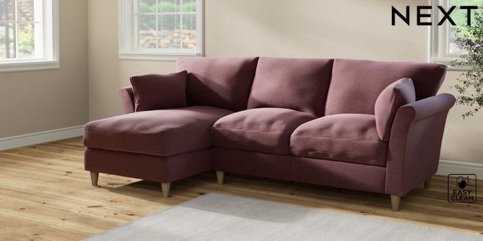7.2.10 Buy Hartley Relaxed Sit Medium Sofa Chaise - Left Hand Fine Chenille Easy Clean Mid Mulberry Purple Low Conical - Light from the Next UK online shop Click here to use our accessible website