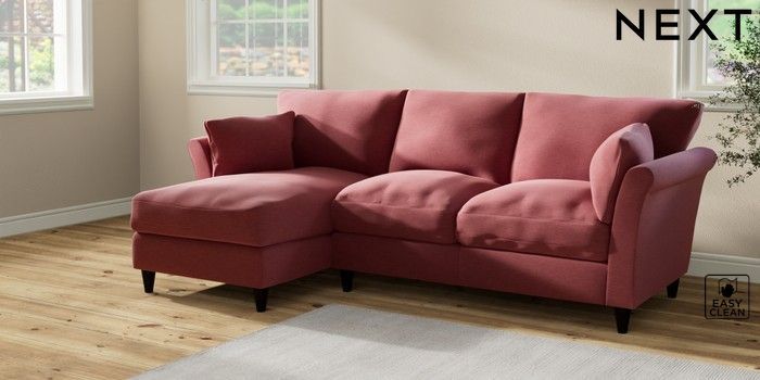 7.2.10 Buy Hartley Relaxed Sit Medium Sofa Chaise - Left Hand Fine Chenille Easy Clean Mid Pink Low Conical - Dark from the Next UK online shop Click here to use our accessible website