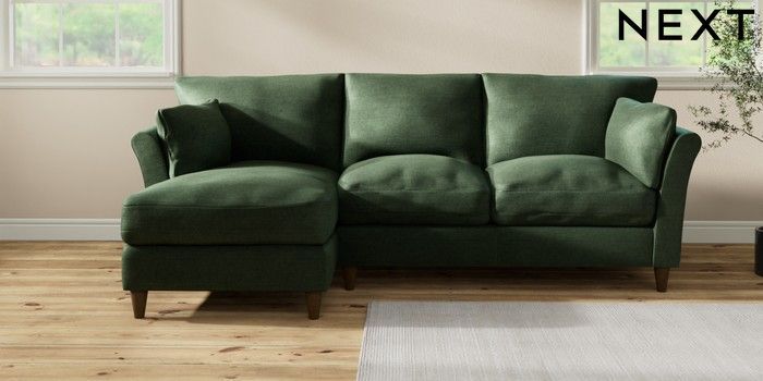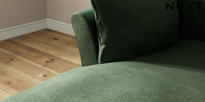 7.3.1 Buy Hartley Relaxed Sit Medium Sofa Chaise - Left Hand Luxe Chenille Dark Green Low Conical - Mid from the Next UK online shop