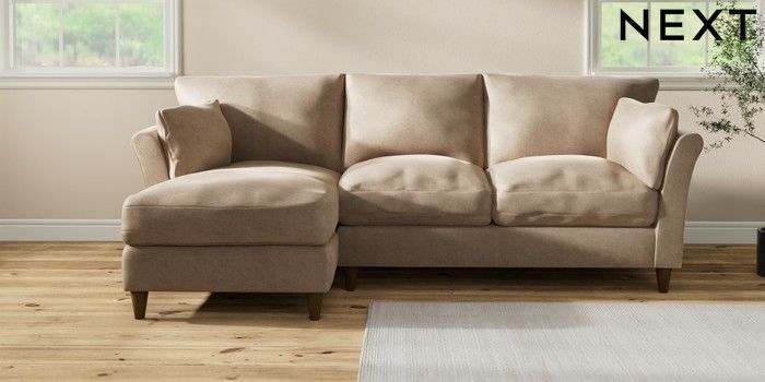 7.3.1 Buy Hartley Relaxed Sit Medium Sofa Chaise - Left Hand Luxe Chenille Mid Camel Beige Low Conical - Mid from the Next UK online shop