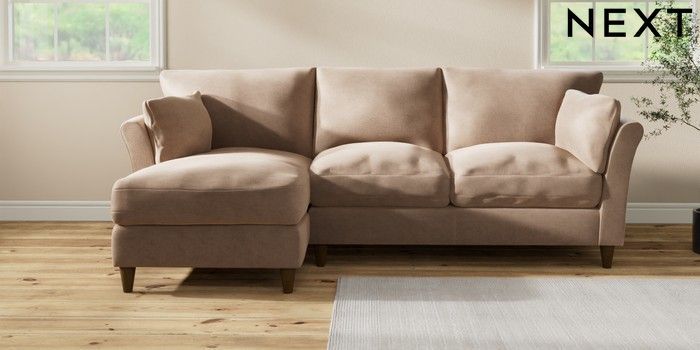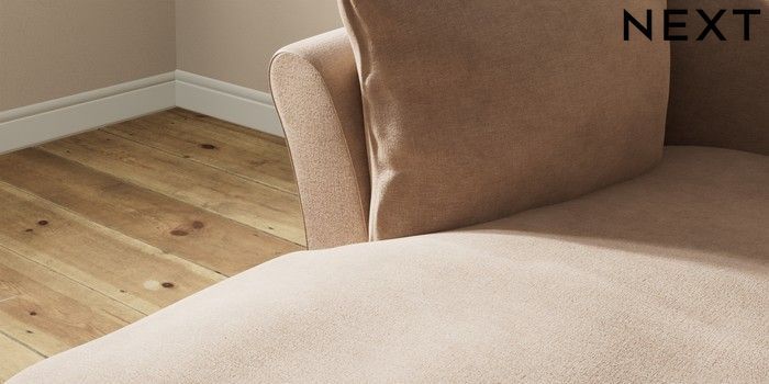 7.3.1 Buy Hartley Relaxed Sit Medium Sofa Chaise - Left Hand Luxe Chenille Mid Natural Low Conical - Mid from the Next UK online shop