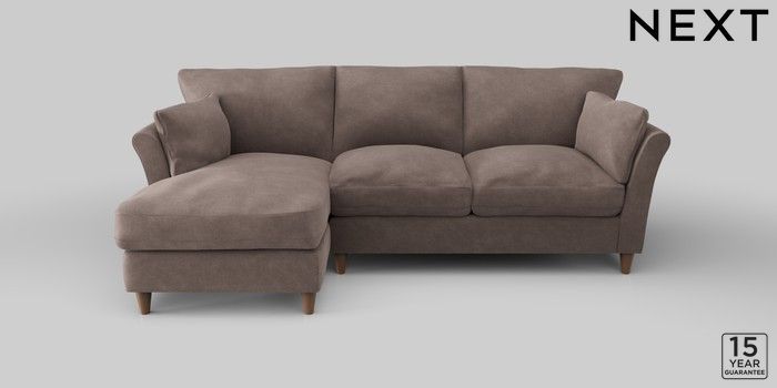 6.12.1 Buy Hartley Relaxed Sit Medium Sofa Chaise - Left Hand Luxe Chenille Mink Brown Low Conical - Mid from the Next UK online shop Click here to use our accessible website