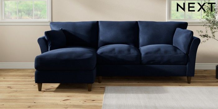 7.3.1 Buy Hartley Relaxed Sit Medium Sofa Chaise - Left Hand Luxe Chenille Navy Blue Low Conical - Mid from the Next UK online shop