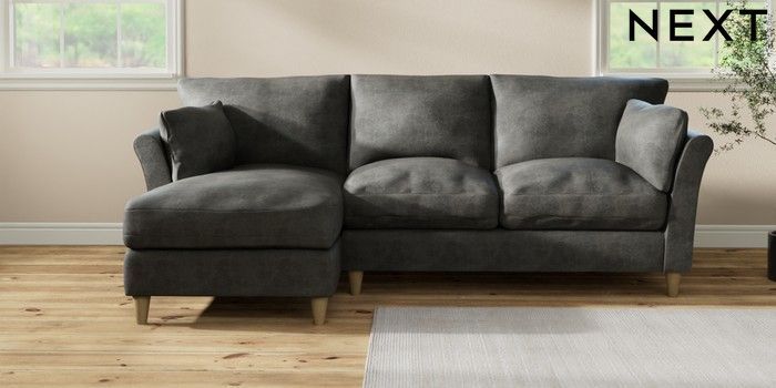 7.3.1 Buy Hartley Relaxed Sit Medium Sofa Chaise - Left Hand Monza Faux Leather Easy Clean Dark Grey Low Conical - Light from the Next UK online shop