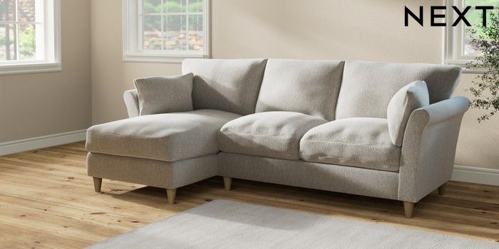7.2.6 Buy Hartley Relaxed Sit Medium Sofa Chaise - Left Hand Multi Weave Light Blue Low Conical - Light from the Next UK online shop Click here to use our accessible website