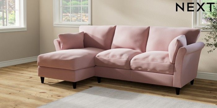 7.2.10 Buy Hartley Relaxed Sit Medium Sofa Chaise - Left Hand Natural Mix Light Rose Pink Low Conical - Dark from the Next UK online shop Click here to use our accessible website