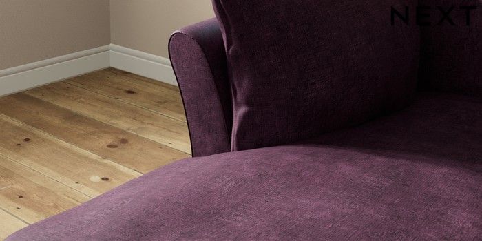 7.3.1 Buy Hartley Relaxed Sit Medium Sofa Chaise - Left Hand Plush Chenille Dark Plum Purple Low Conical - Dark from the Next UK online shop