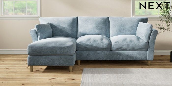7.3.1 Buy Hartley Relaxed Sit Medium Sofa Chaise - Left Hand Plush Chenille Light Blue Low Conical - Light from the Next UK online shop