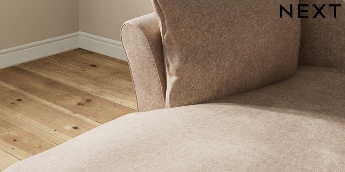7.3.1 Buy Hartley Relaxed Sit Medium Sofa Chaise - Left Hand Plush Chenille Mid Natural Low Conical - Dark from the Next UK online shop