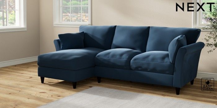 7.2.10 Buy Hartley Relaxed Sit Medium Sofa Chaise - Left Hand Plush Velvet Easy Clean Airforce Blue Low Conical - Dark from the Next UK online shop Click here to use our accessible website