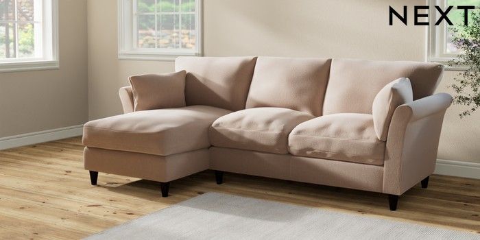 7.2.10 Buy Hartley Relaxed Sit Medium Sofa Chaise - Left Hand Relaxed Linen Look Mid Natural Low Conical - Dark from the Next UK online shop Click here to use our accessible website