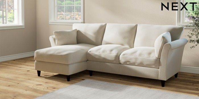 7.2.10 Buy Hartley Relaxed Sit Medium Sofa Chaise - Left Hand Relaxed Linen Look Oyster Low Conical - Dark from the Next UK online shop Click here to use our accessible website