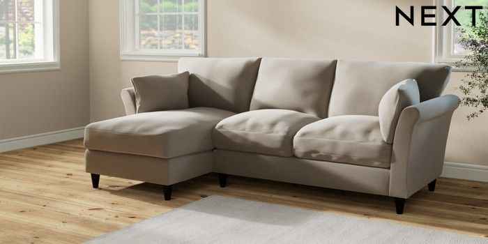 7.2.10 Buy Hartley Relaxed Sit Medium Sofa Chaise - Left Hand Ripple Chenille Light Natural Low Conical - Dark from the Next UK online shop Click here to use our accessible website