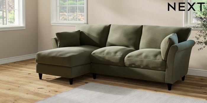 7.2.10 Buy Hartley Relaxed Sit Medium Sofa Chaise - Left Hand Ripple Chenille Mid Moss Green Low Conical - Dark from the Next UK online shop Click here to use our accessible website