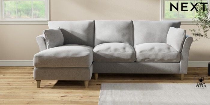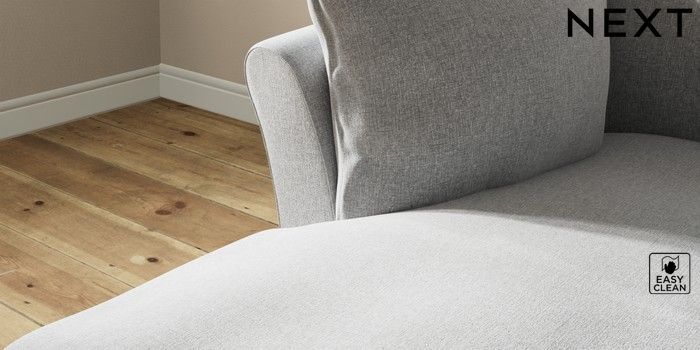 7.3.1 Buy Hartley Relaxed Sit Medium Sofa Chaise - Left Hand Tweedy Blend Easy Clean Light Silver Grey Low Conical - Light from the Next UK online shop