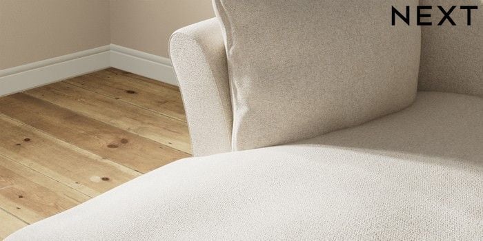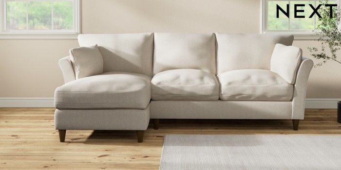 7.3.1 Buy Hartley Relaxed Sit Medium Sofa Chaise - Left Hand Tweedy Chenille Oyster Low Conical - Mid from the Next UK online shop