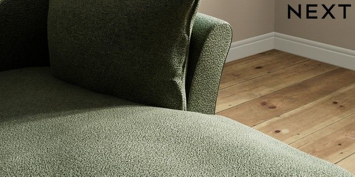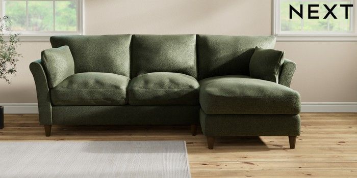 7.3.1 Buy Hartley Relaxed Sit Medium Sofa Chaise - Right Hand Boucle Chenille Dark Moss Green Low Conical - Mid from the Next UK online shop