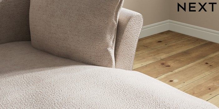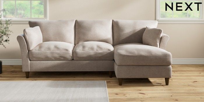 7.3.1 Buy Hartley Relaxed Sit Medium Sofa Chaise - Right Hand Boucle Chenille Light Natural Low Conical - Mid from the Next UK online shop