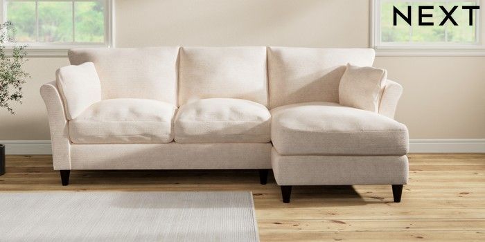 7.3.1 Buy Hartley Relaxed Sit Medium Sofa Chaise - Right Hand Boucle Chenille Oyster Low Conical - Dark from the Next UK online shop