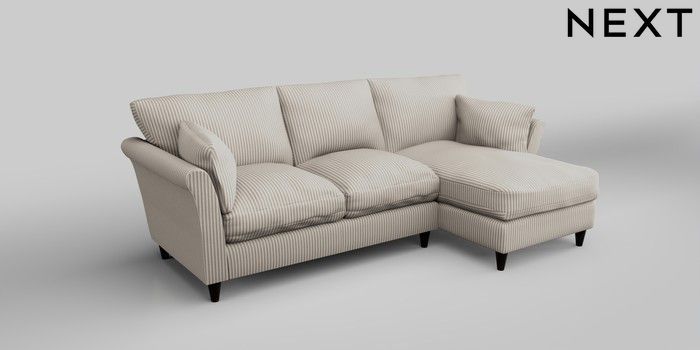 6.12.1 Buy Hartley Relaxed Sit Medium Sofa Chaise - Right Hand Chenille Stripe Natural Low Conical - Dark from the Next UK online shop Click here to use our accessible website