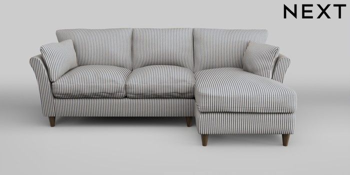 7.0.3 Buy Hartley Relaxed Sit Medium Sofa Chaise - Right Hand Chenille Stripe Slate Blue Low Conical - Mid from the Next UK online shop Click here to use our accessible website