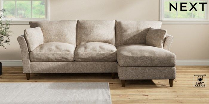 7.3.1 Buy Hartley Relaxed Sit Medium Sofa Chaise - Right Hand Chunky Boucle Easy Clean Mid Natural Low Conical - Mid from the Next UK online shop