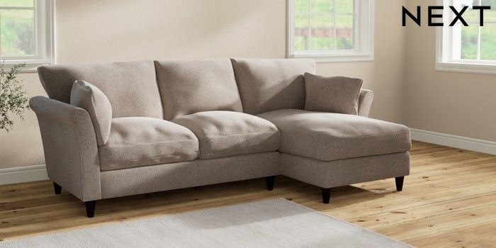 7.2.10 Buy Hartley Relaxed Sit Medium Sofa Chaise - Right Hand Chunky Chenille Light Dove Low Conical - Dark from the Next UK online shop Click here to use our accessible website
