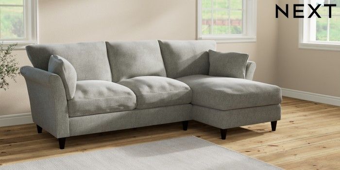 7.2.10 Buy Hartley Relaxed Sit Medium Sofa Chaise - Right Hand Chunky Chenille Light Grey Low Conical - Dark from the Next UK online shop Click here to use our accessible website