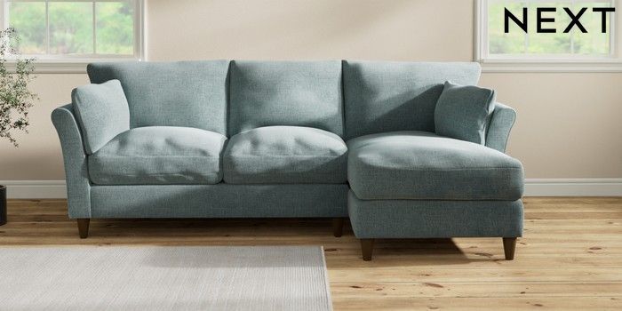 7.3.1 Buy Hartley Relaxed Sit Medium Sofa Chaise - Right Hand Chunky Chenille Light Teal Green Low Conical - Mid from the Next UK online shop