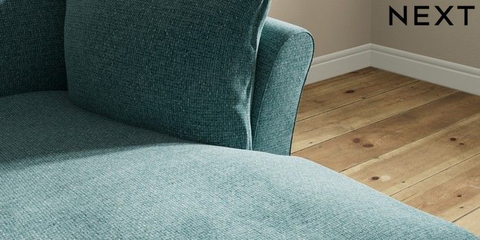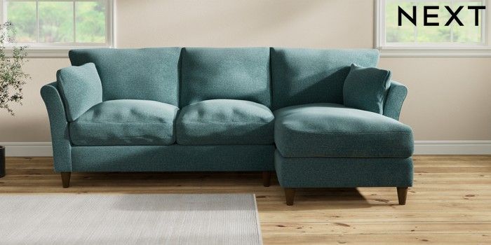 7.3.1 Buy Hartley Relaxed Sit Medium Sofa Chaise - Right Hand Chunky Chenille Mid Teal Green Low Conical - Mid from the Next UK online shop