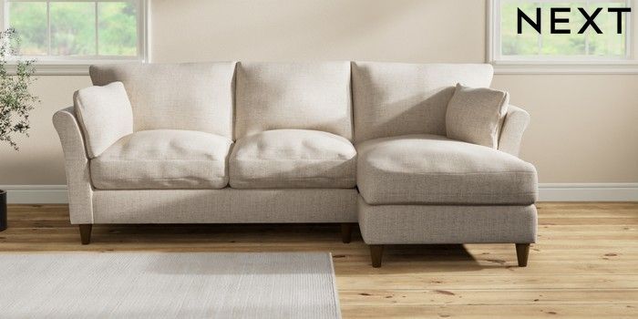 7.3.1 Buy Hartley Relaxed Sit Medium Sofa Chaise - Right Hand Chunky Weave Mid Natural Low Conical - Mid from the Next UK online shop