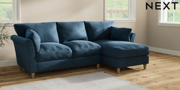 7.2.10 Buy Hartley Relaxed Sit Medium Sofa Chaise - Right Hand Cotswold Chenille Dark Blue Low Conical - Light from the Next UK online shop Click here to use our accessible website