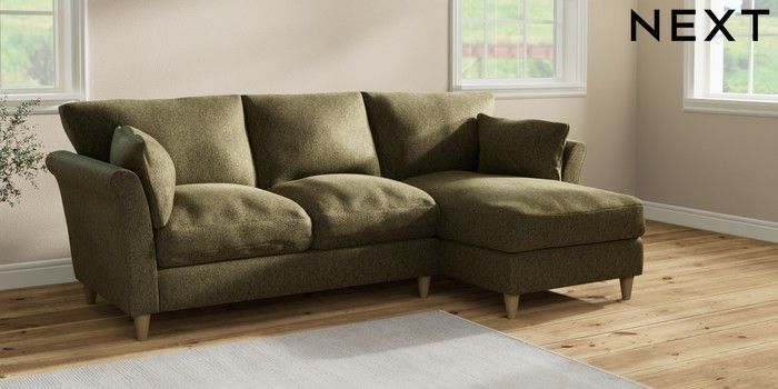 7.2.10 Buy Hartley Relaxed Sit Medium Sofa Chaise - Right Hand Cotswold Chenille Dark Green Low Conical - Light from the Next UK online shop Click here to use our accessible website