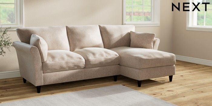 7.2.10 Buy Hartley Relaxed Sit Medium Sofa Chaise - Right Hand Cotswold Chenille Light Natural Low Conical - Dark from the Next UK online shop Click here to use our accessible website