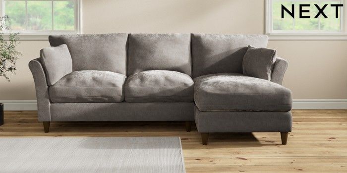 7.3.1 Buy Hartley Relaxed Sit Medium Sofa Chaise - Right Hand Distressed Velour French Grey Low Conical - Mid from the Next UK online shop