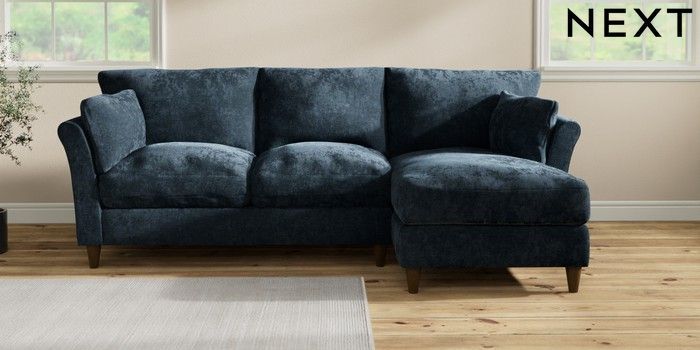 7.3.1 Buy Hartley Relaxed Sit Medium Sofa Chaise - Right Hand Distressed Velour Midnight Blue Low Conical - Mid from the Next UK online shop