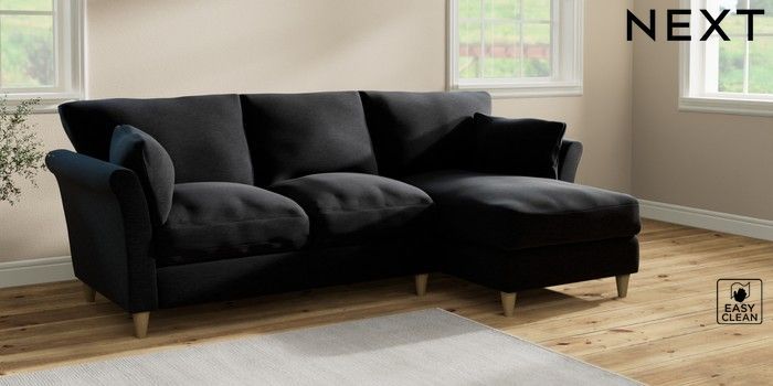 7.2.10 Buy Hartley Relaxed Sit Medium Sofa Chaise - Right Hand Fine Chenille Easy Clean Black Low Conical - Light from the Next UK online shop Click here to use our accessible website